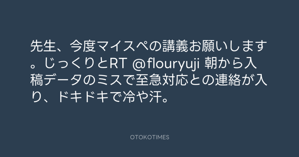 先生、今度マイスペの講義お願いします。じっくりとRT @flouryuji 朝から入稿デー... -