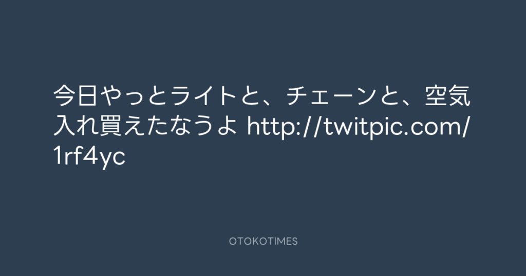 今日やっとライトと、チェーンと、空気入れ買えたなうよ http://twitpic.com/1rf4yc -