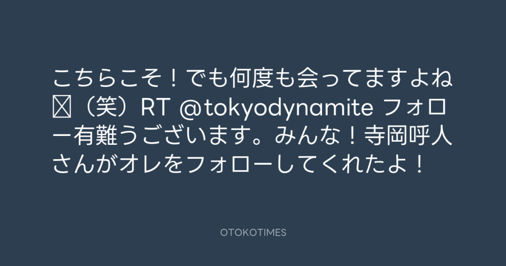 こちらこそ!でも何度も会ってますよね⁇(笑)RT @tokyodynamite フォロー有難うご... -