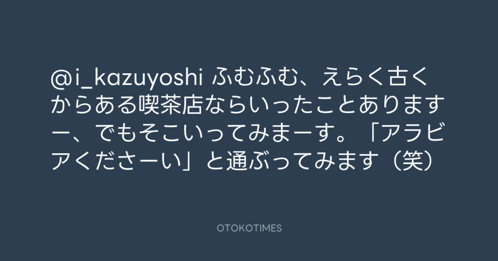 @i_kazuyoshi ふむふむ、えらく古くからある喫茶店ならいったことありますー、でも... -