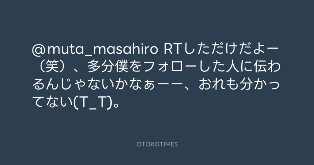 @muta_masahiro RTしただけだよー(笑)、多分僕をフォローした人に伝わるんじゃな... -