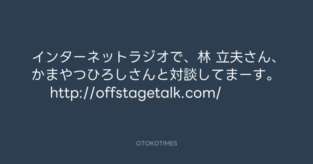 インターネットラジオで、林 立夫さん、かまやつひろしさんと対談してまーす。 h... -