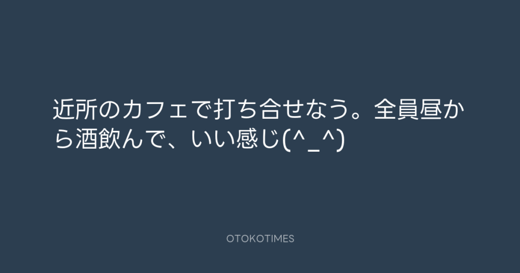 近所のカフェで打ち合せなう。全員昼から酒飲んで、いい感じ(^_^) -