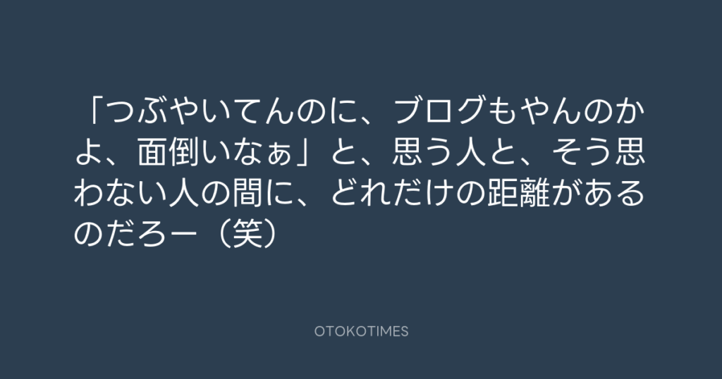 「つぶやいてんのに、ブログもやんのかよ、面倒いなぁ」と、思う人と、そう思わな... -