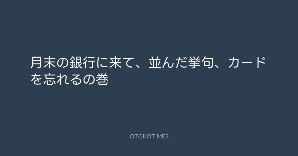 月末の銀行に来て、並んだ挙句、カードを忘れるの巻 -