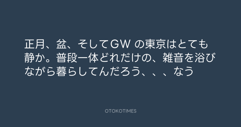 正月、盆、そしてGW の東京はとても静か。普段一体どれだけの、雑音を浴びながら... -
