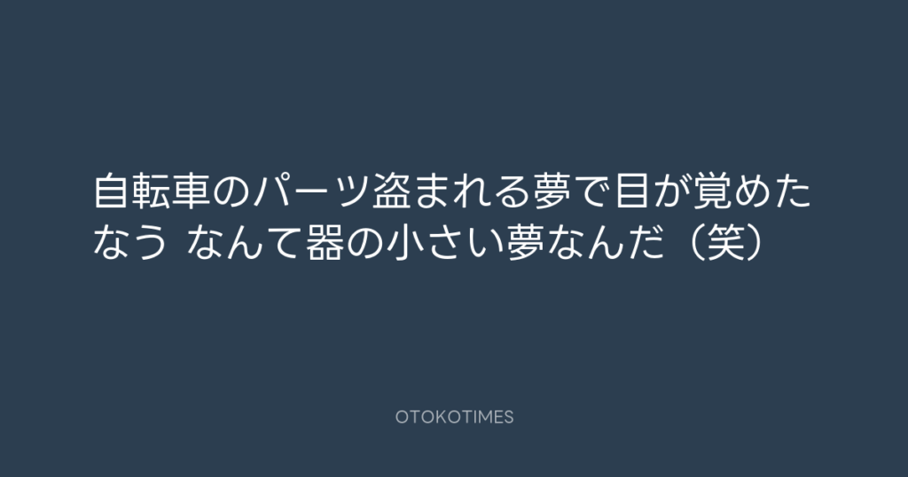 自転車のパーツ盗まれる夢で目が覚めたなう なんて器の小さい夢なんだ(笑)