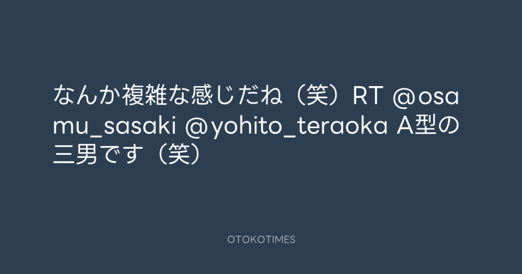 なんか複雑な感じだね(笑)RT @osamu_sasaki @yohito_teraoka A型の三男です(笑)
