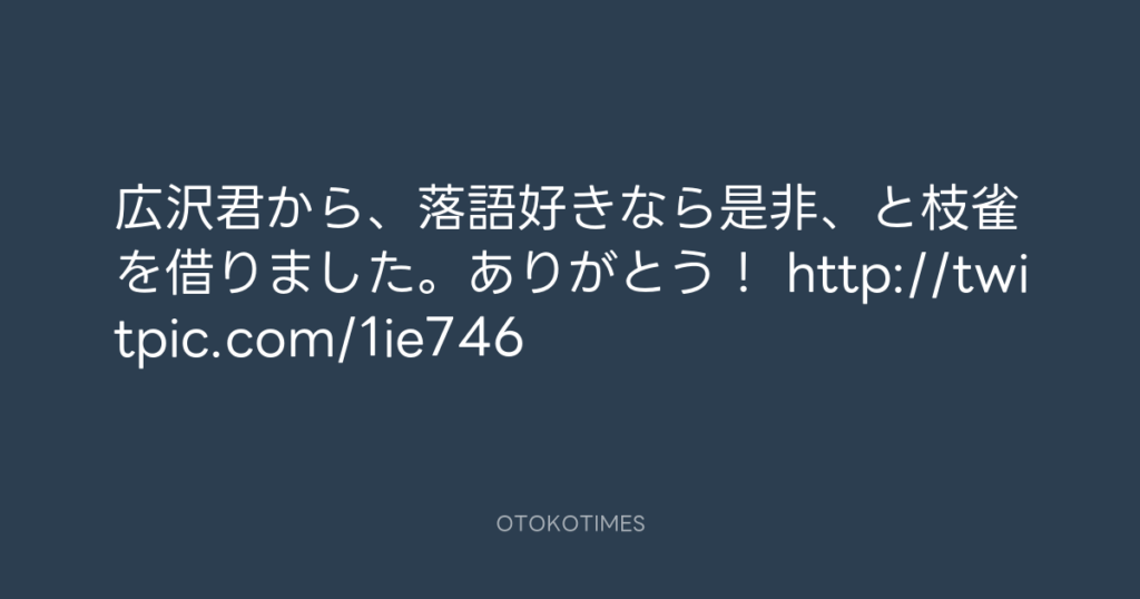 広沢君から、落語好きなら是非、と枝雀を借りました。ありがとう! http://twitpic... -