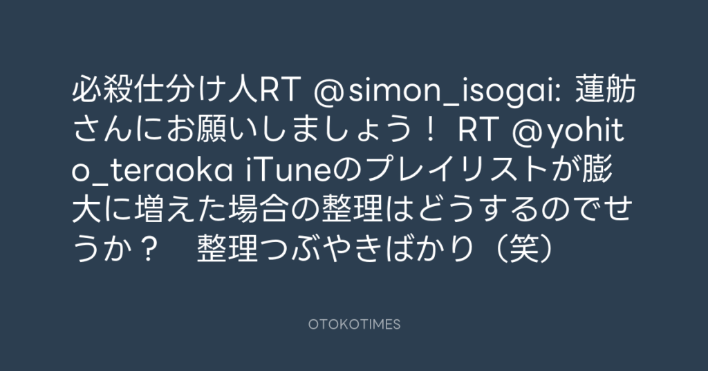 iTuneのプレイリストが膨大に増えた場合の整理はどうするのでせうか? 整理つぶや... -