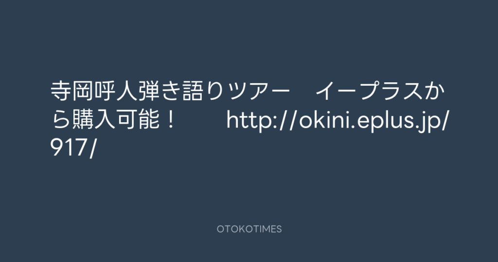 寺岡呼人弾き語りツアー イープラスから購入可能! http://okini.eplus.jp/917/ -