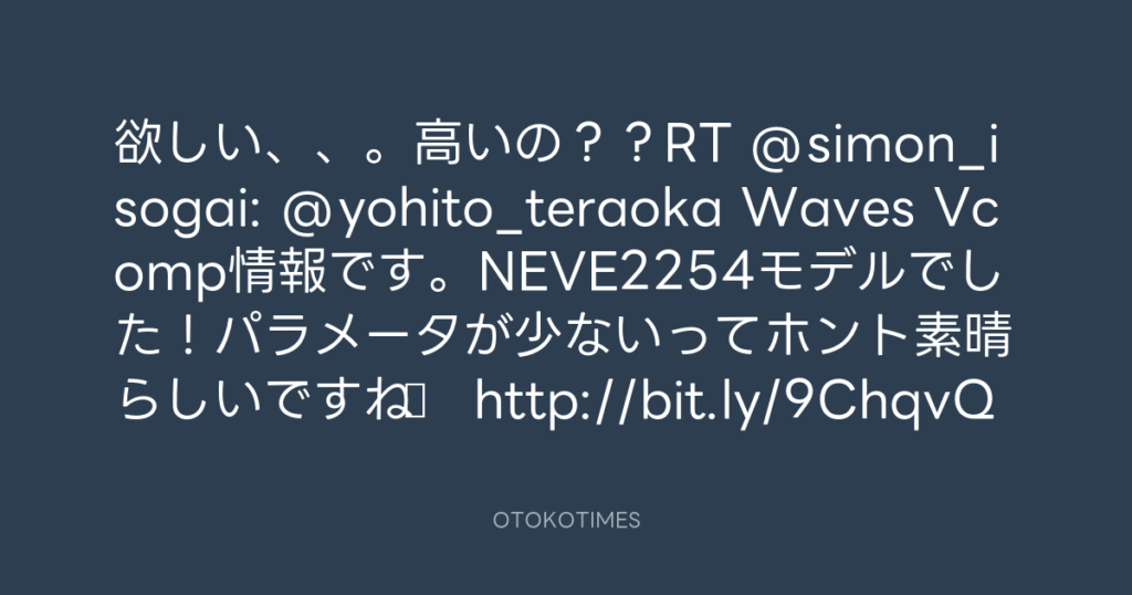 欲しい、、。高いの??RT @simon_isogai: @yohito_teraoka Waves Vcomp情報です。... -