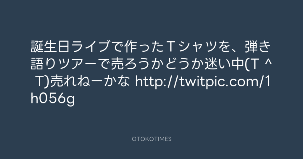 誕生日ライブで作ったTシャツを、弾き語りツアーで売ろうかどうか迷い中(T ^ T)売...