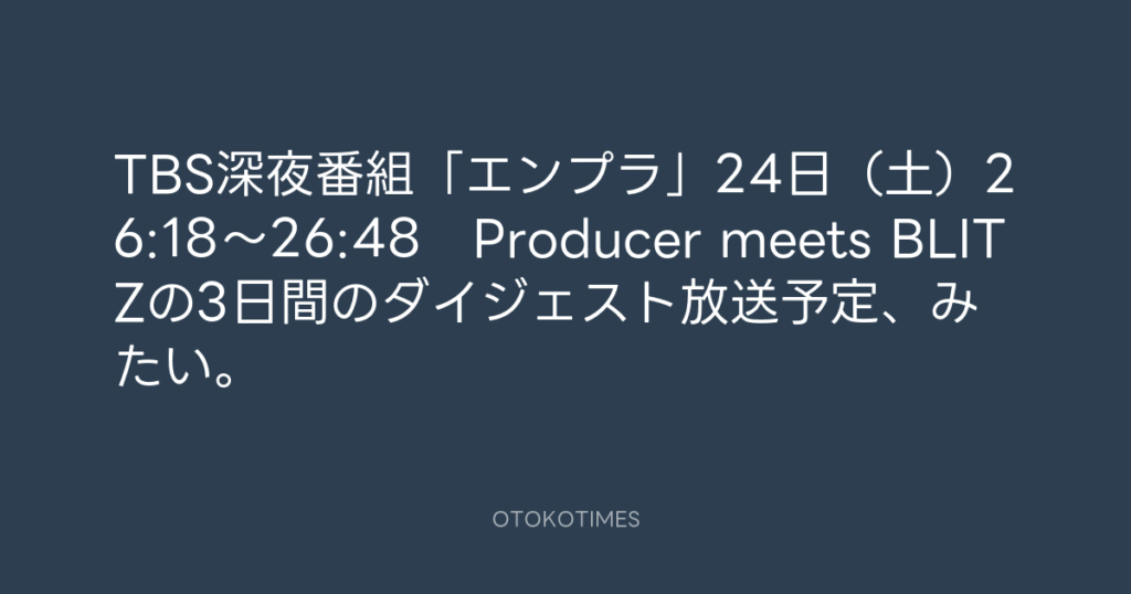 TBS深夜番組「エンプラ」24日(土)26:18~26:48 Producer meets BLITZの3日間の... -