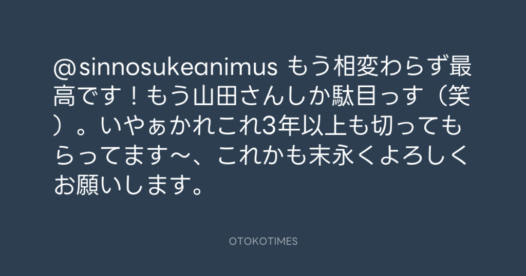 @sinnosukeanimus もう相変わらず最高です!もう山田さんしか駄目っす(笑)。いや... -