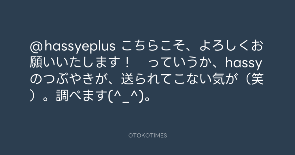 @hassyeplus こちらこそ、よろしくお願いいたします! っていうか、hassyのつぶや... -