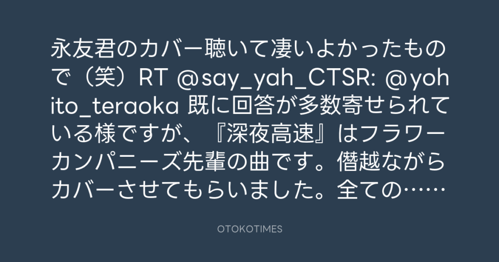 永友君のカバー聴いて凄いよかったもので(笑)RT @say_yah_CTSR: @yohito_teraoka... -