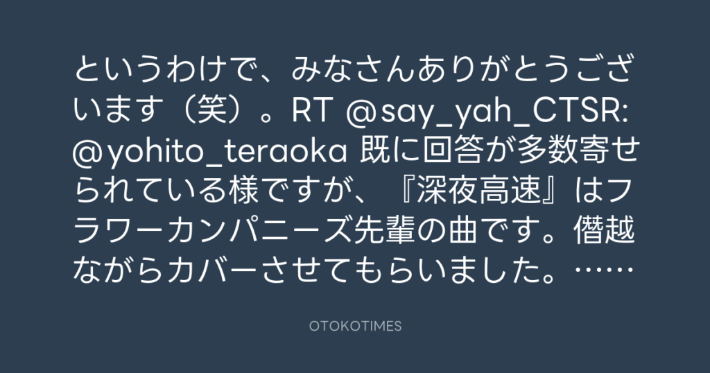 というわけで、みなさんありがとうございます(笑)。RT @say_yah_CTSR: @yohito_t... -