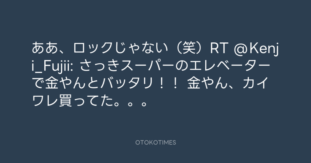 ああ、ロックじゃない(笑)RT @Kenji_Fujii: さっきスーパーのエレベーターで金や... -