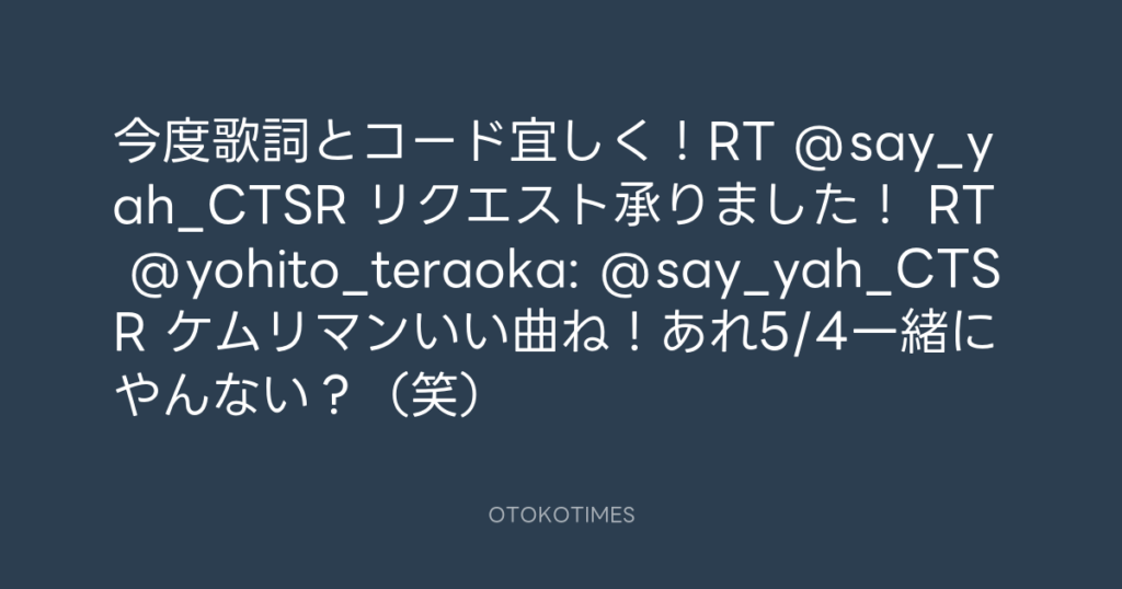 今度歌詞とコード宜しく!RT @say_yah_CTSR リクエスト承りました! RT @yohito_te... -