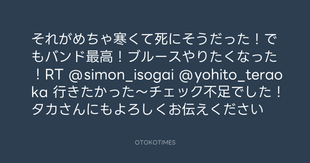 それがめちゃ寒くて死にそうだった!でもバンド最高!ブルースやりたくなった!RT ... -