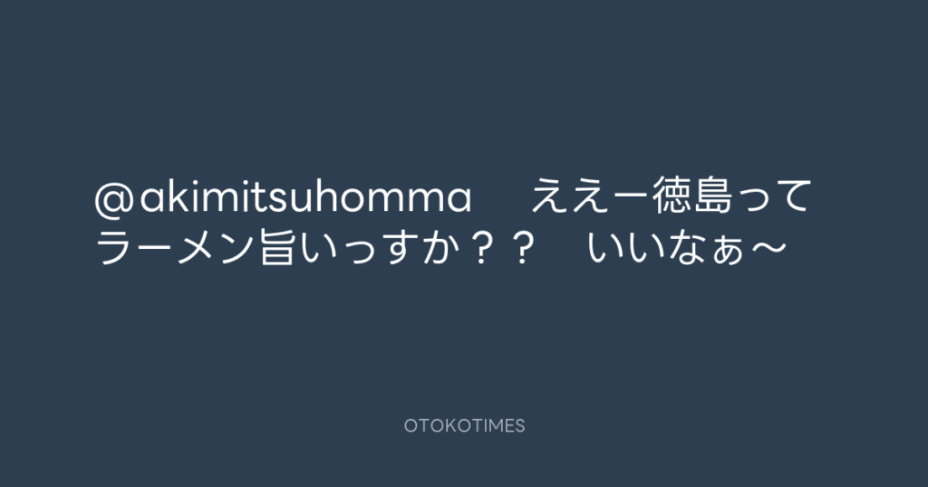 @akimitsuhomma ええー徳島ってラーメン旨いっすか?? いいなぁ〜 -