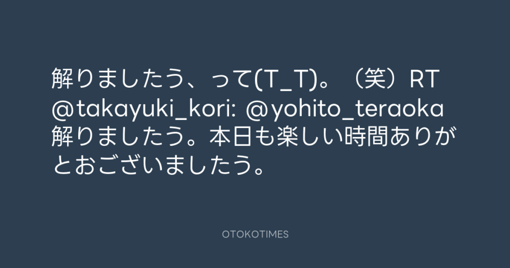 解りましたう、って(T_T)。(笑)RT @takayuki_kori: @yohito_teraoka 解りました... -