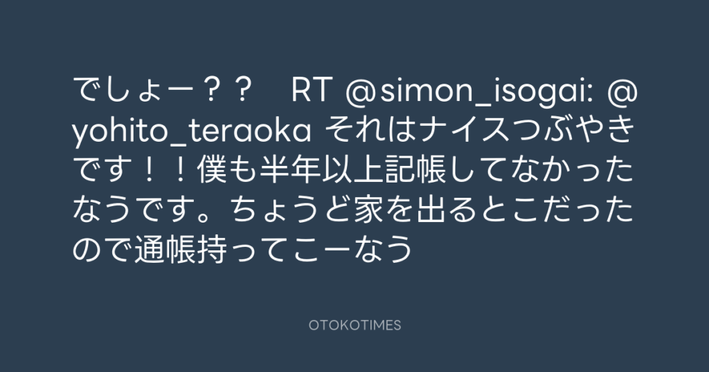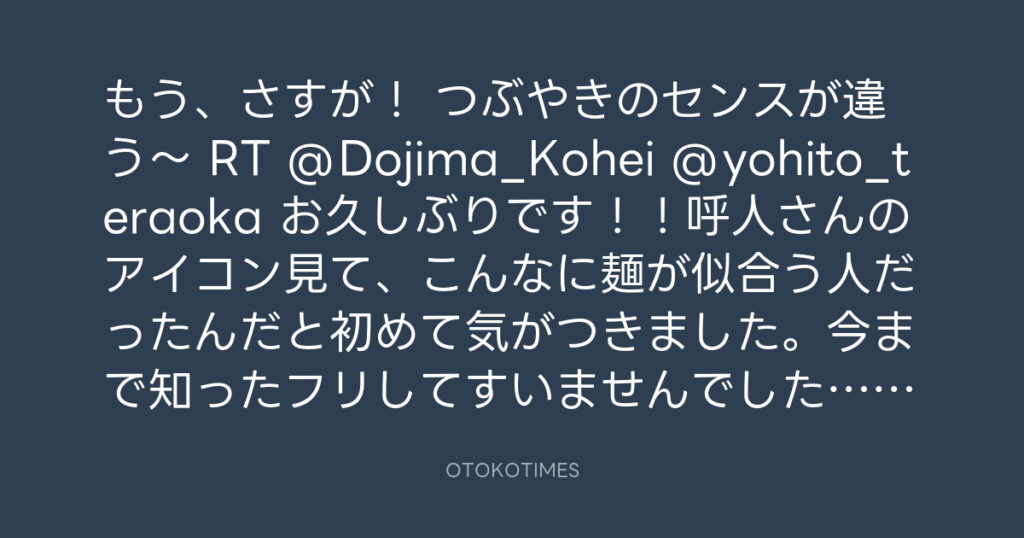 もう、さすが! つぶやきのセンスが違う〜 RT @Dojima_Kohei @yohito_teraoka お久... -