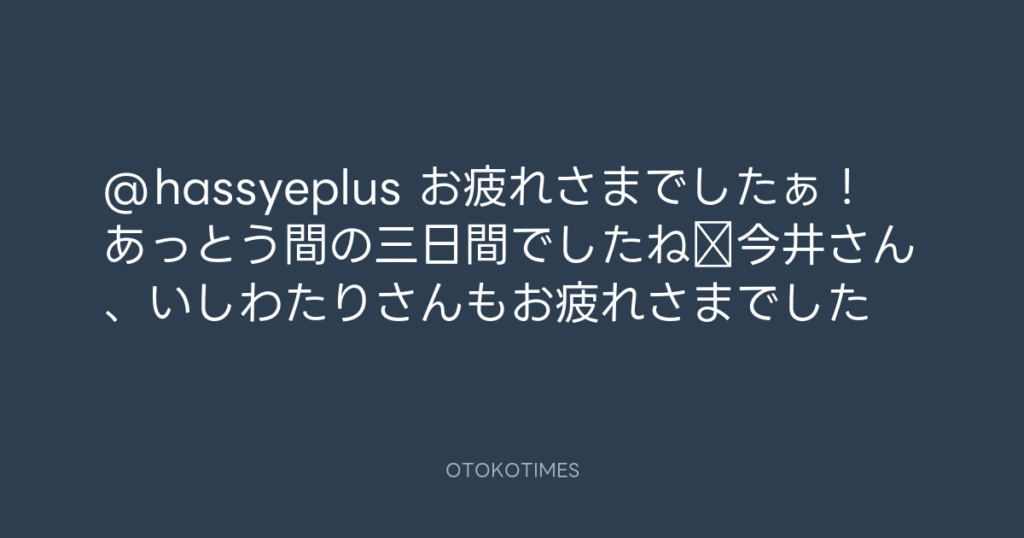 @hassyeplus お疲れさまでしたぁ! あっとう間の三日間でしたね‼今井さん、いしわ... -