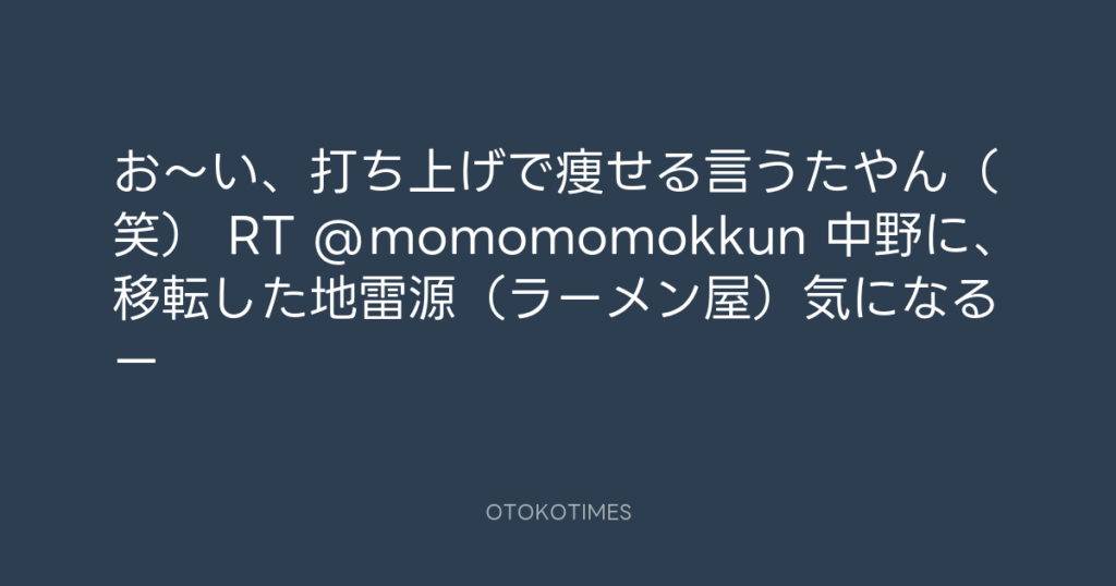 お〜い、打ち上げで痩せる言うたやん(笑) RT @momomomokkun 中野に、移転した地... -