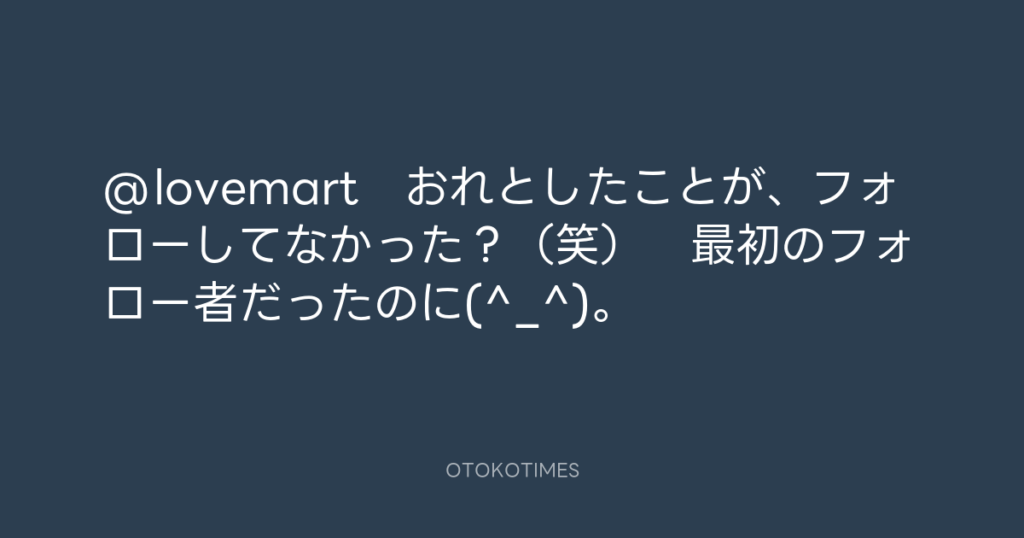@lovemart おれとしたことが、フォローしてなかった?(笑) 最初のフォロー者だ... -