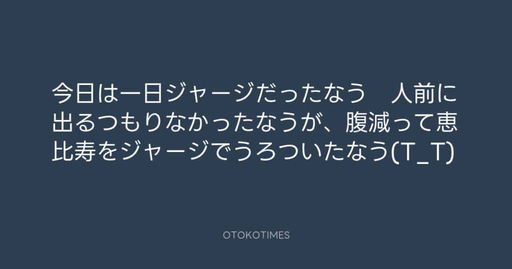 今日は一日ジャージだったなう 人前に出るつもりなかったなうが、腹減って恵比寿... -