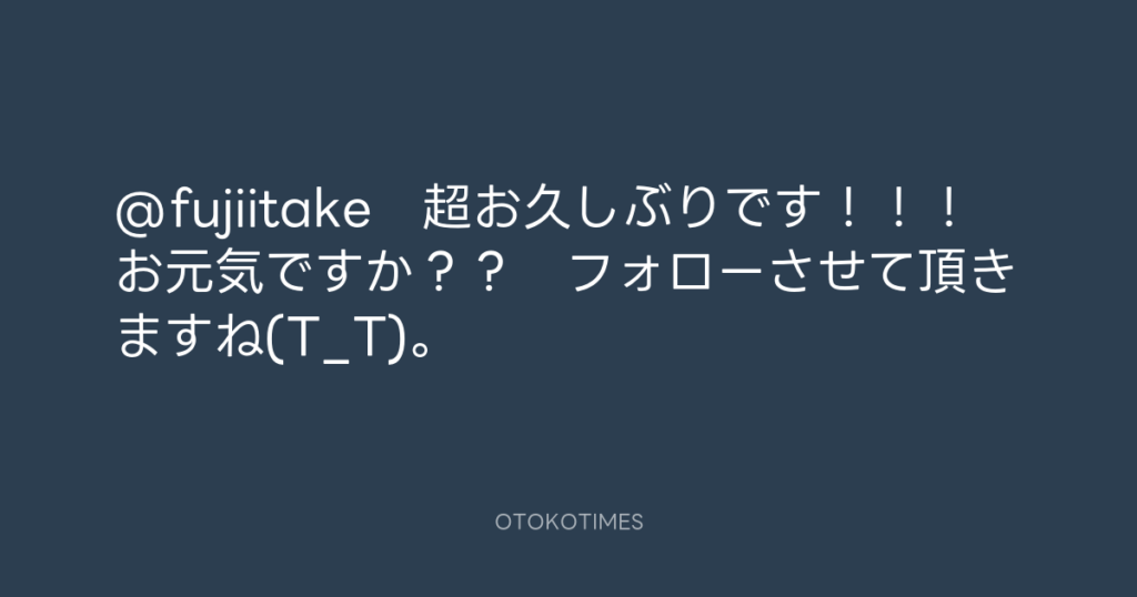 @fujiitake 超お久しぶりです!!! お元気ですか?? フォローさせて頂きます... -