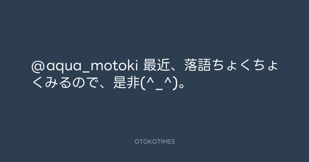 @aqua_motoki 最近、落語ちょくちょくみるので、是非(^_^)。 -