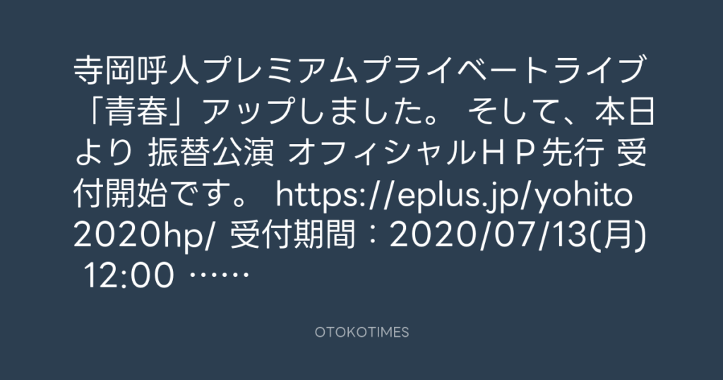 寺岡呼人 @yohito_teraoka – 19:49・2020年7月20日