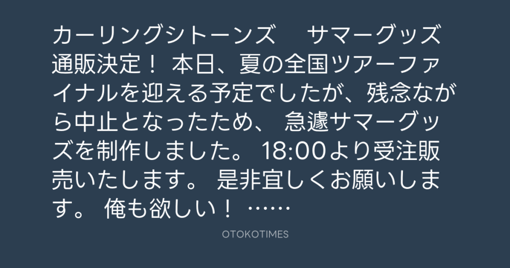 カーリングシトーンズ サマーグッズ通販決定! 本日、夏の全国ツアーファイナル... -