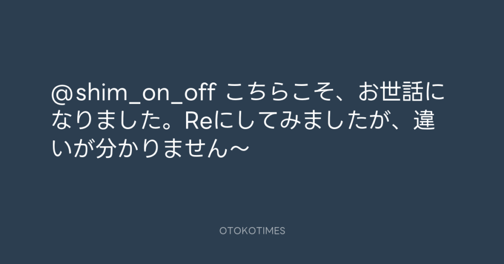 @shim_on_off こちらこそ、お世話になりました。Reにしてみましたが、違いが分かり... -