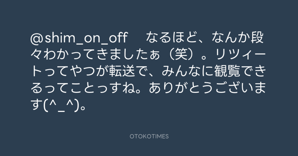 @shim_on_off なるほど、なんか段々わかってきましたぁ(笑)。リツィートってや... -