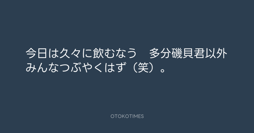 今日は久々に飲むなう 多分磯貝君以外みんなつぶやくはず(笑)。 -