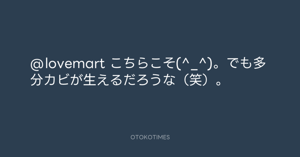 @lovemart こちらこそ(^_^)。でも多分カビが生えるだろうな(笑)。