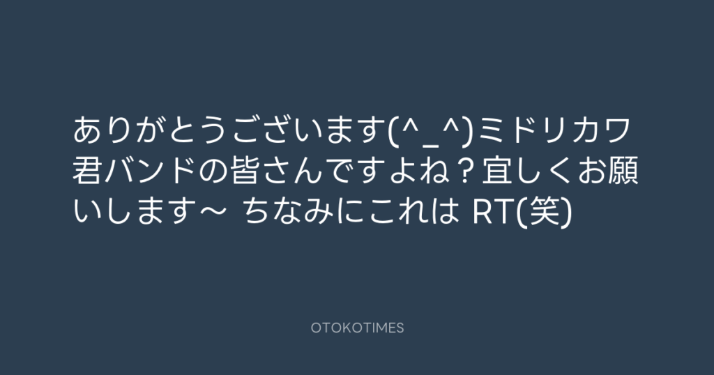 ありがとうございます(^_^)ミドリカワ君バンドの皆さんですよね?宜しくお願いしま... -
