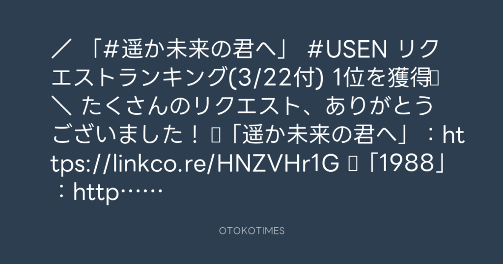 / 「#遥か未来の君へ」 #USEN リクエストランキング(3/22付) 1位を獲得♪ \ たく... -