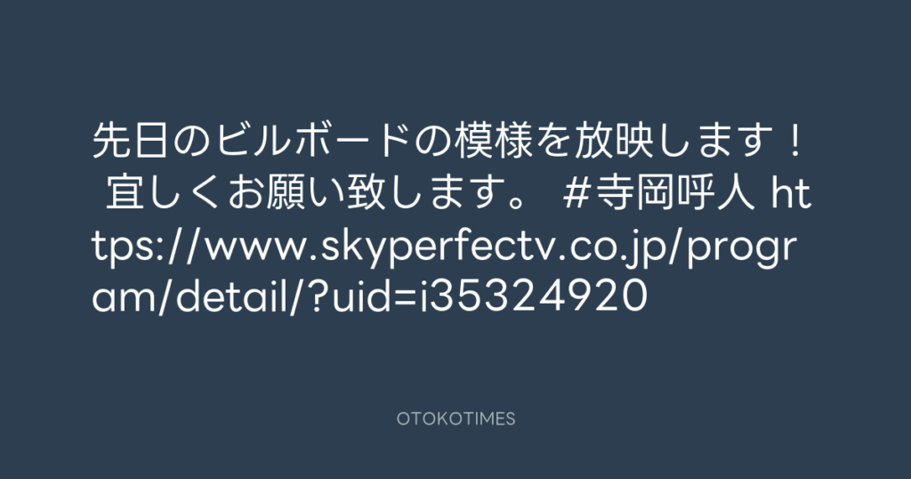先日のビルボードの模様を放映します! 宜しくお願い致します。 #寺岡呼人 https:/... -