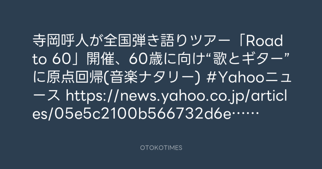 日程間違えてました🙏 寺岡呼人弾き語りTOUR「Road to 60」2026決定! 7/12北海... -