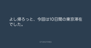 よし帰ろっと、今回は10日間の東京滞在でした。