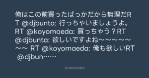 俺はこの前買ったばっかだから無理だRT @djbunta: 行っちゃいましょうよ。 RT @koyomaeda: 買っちゃう?RT @djbunta: 欲しいですよね〜〜〜〜〜〜〜 RT @koyomaeda: 俺も欲しいRT @djbunta: 光る MacBook Air