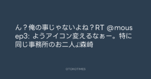 ん?俺の事じゃないよね?RT @mousep3: ようアイコン変えるなぁー。特に同じ事務所のお二人。▷森崎