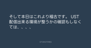UST配信出来る環境が整うかの確認もしなくては、、、、