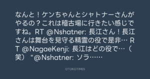 なんと!ケンちゃんとシャトナーさんがやるの?これは稽古場に行きたい感じですね。RT @Nshatner: 長江さん!長江さんは舞台を見守る精霊の役で是非… RT @NagaeKenji: 長江はどの役で…(笑) “@Nshatner: ソラオの世界、改稿中。2011年版より