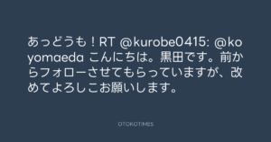 Koyo Maeda @koyomaeda – 14:22・2011年8月1日 2011 8/01 前田耕陽 2011-08-01 あっどうも!RT @kurobe0415: @koyomaeda こんにちは。黒田です。前からフォローさせてもらっていますが、改めてよろしこお願いします。 Source:https://x.com/koyomaeda/status/97899952033894400 text X Post 前田耕陽 前田耕陽 この記事が気に入ったら フォローしてね! Follow @OtokoTimes1988 よかったらシェアしてね! URLをコピーしました! Koyo Maeda @koyomaeda - 12:40・2011年8月1日 Koyo Maeda @koyomaeda - 17:13・2011年8月1日 関連記事 Artist 前田耕陽 1968.08.16